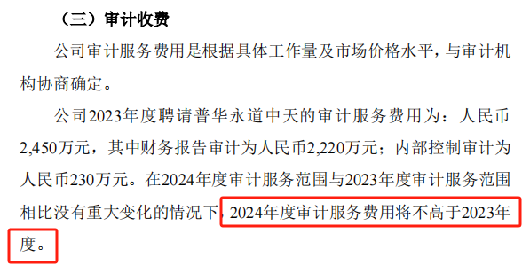 上海電氣此前擬續(xù)聘普華永道提及,在審計(jì)服務(wù)范圍沒有重大變化情況下,2024年度審計(jì)服務(wù)費(fèi)用將不高于2023年度。