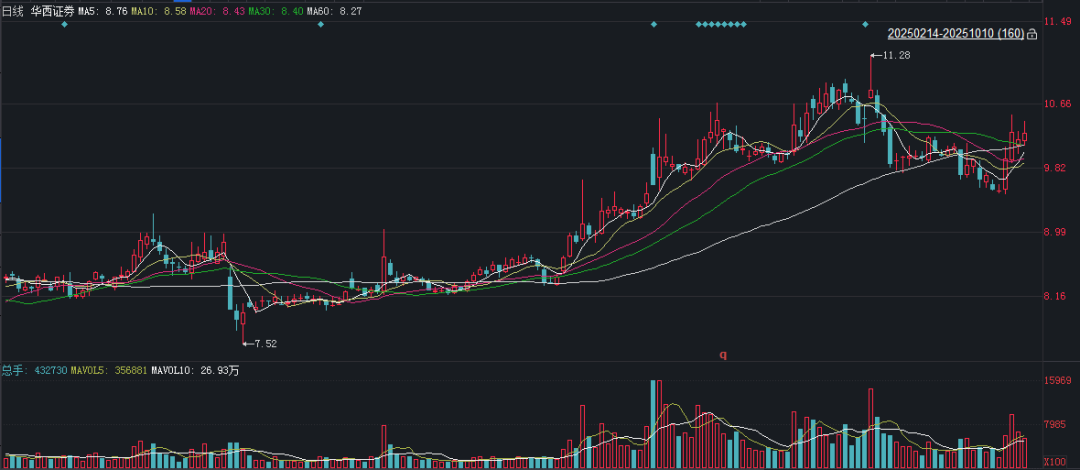 二級(jí)市場(chǎng)上,截至10月10日收盤,華西證券上漲0.79%報(bào)10.26元/股,最新市值269.33億元,今年來公司股價(jià)累計(jì)上漲24%。